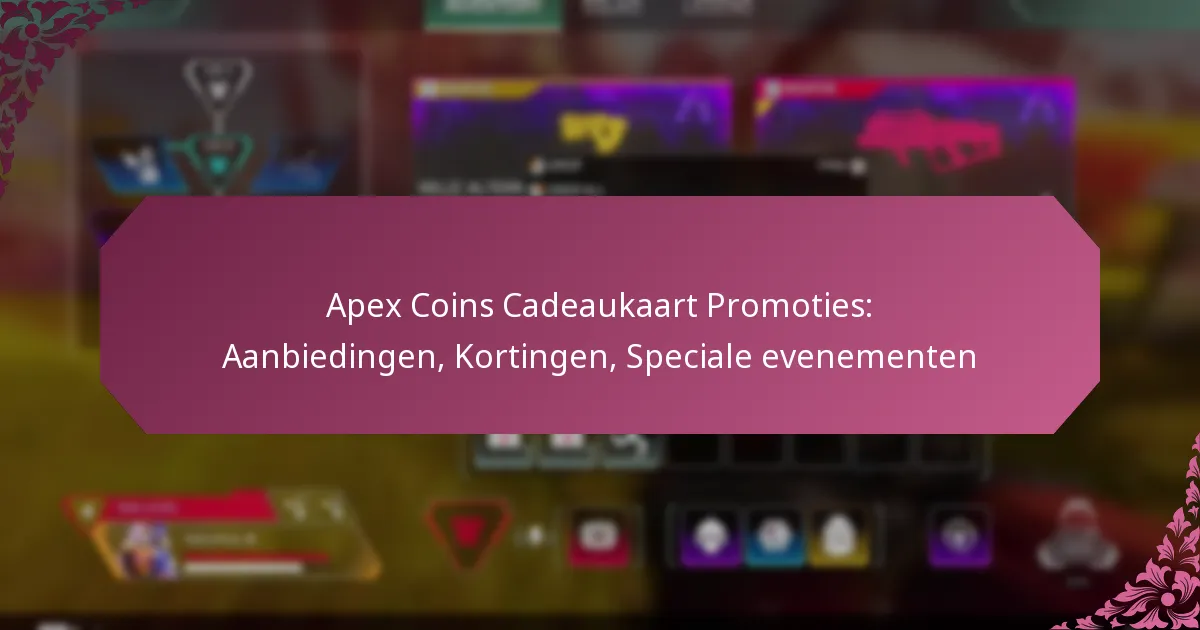 Apex Coins cadeaukaart promoties bieden momenteel een scala aan kortingen en bundelaanbiedingen die uw game-ervaring aanzienlijk kunnen verbeteren. Door gebruik te maken van deze aanbiedingen kunnen spelers hun in-game aankopen maximaliseren terwijl ze genieten van nieuwe items en functies in Apex Legends. Het is belangrijk om op de hoogte te blijven van vervaldatums en geschiktheidseisen om het meeste uit deze promoties te halen.